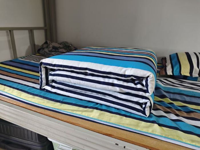 活动深入贯彻“讲、赛、践”理念,设置“讲经验、赛技能、践操作”环节。经9月22日线上初赛评选,成功晋级的同学于9月26日在各自寝室进行线下决赛。决赛现场聚焦“赛”与“践”,选手们动作娴熟,从铺平被面到折叠边角,动作一气呵成。活动最后,由工作人员依据被型规整度、叠被速度等多方面参考打分,评选出最优秀的“叠被能手”。