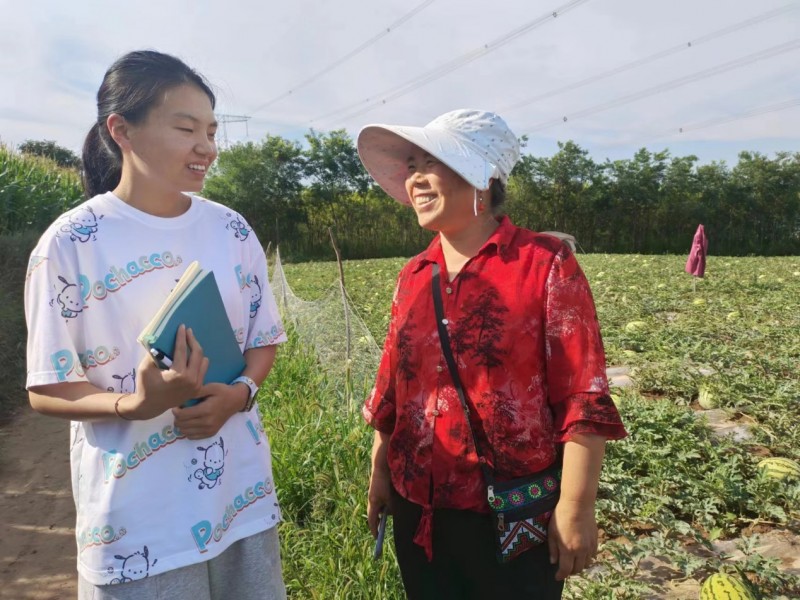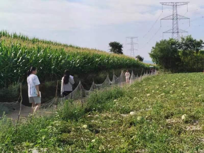 田间,瓜香四溢,萦绕心间。学子们漫步于翠绿的瓜田中,了解当地西瓜的种植要求、生长周期,发展优势,学习体会当地助农发展模式的致富之路。