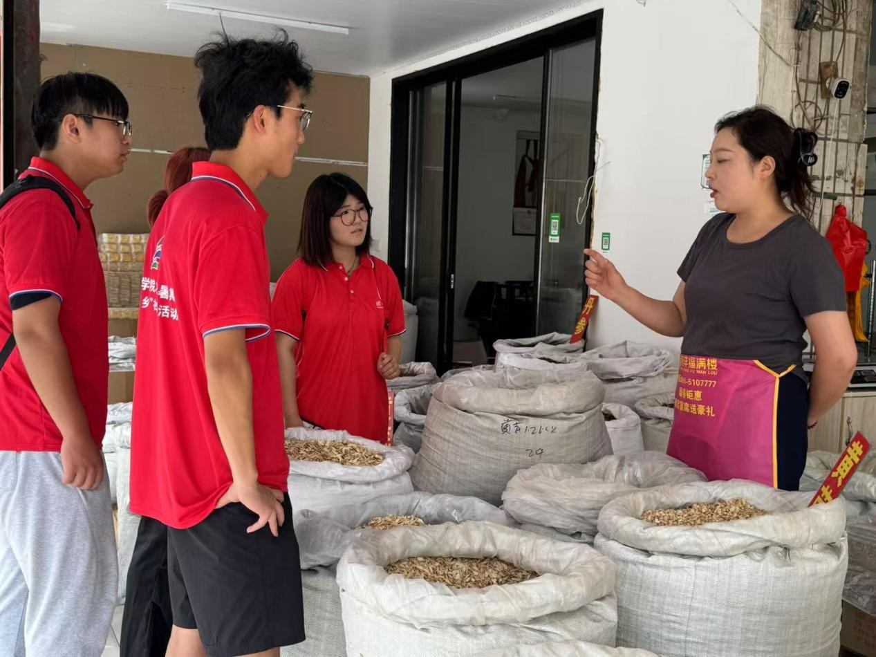 随后,小队深入亳州中医药交易市场。市场内,药香弥漫,摊位上摆满琳琅满目的中药材,亳芍、亳菊等道地药材尤为醒目。队员们穿梭其间,与药商交流,探寻非遗炮制技艺在市场流通中的体现。一位经营多年的药商介绍,当地遵循非遗炮制法加工的药材,因药效稳定、品质上乘,深受各地药企青睐。队员们还学习辨别经非遗技艺处理的药材,从切片厚度到炮制火候痕迹,感受传统工艺对药材品质的雕琢,体悟非遗在市场中延续的活力