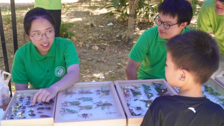 图为实践队员在向社区儿童介绍甲虫分类。蒋启睿 供图