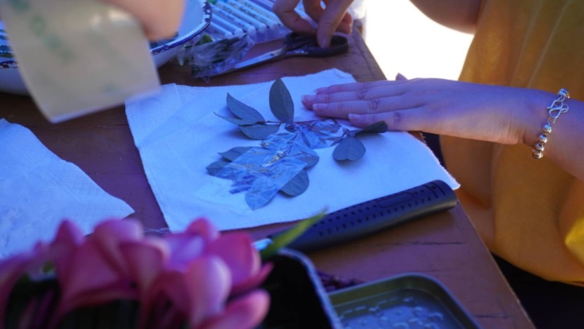 图为实践队员在准备植物拓染材料。蒋启睿 供图