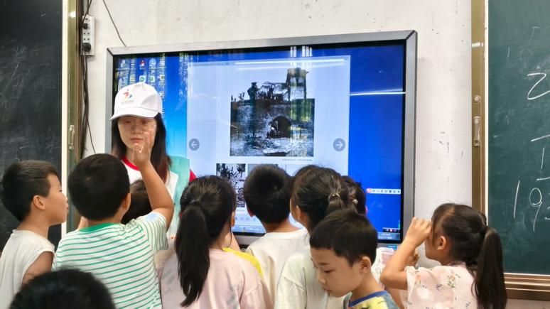 认知铸魂烙印家国情怀。实践团成员借助历史图片定格烽火瞬间、动态地图还原事变进程,让“七七事变”的历史背景与抗战意义清晰呈现。“今天的和平,是先烈们用生命换来的”,五年级学生小琳课后郑重说道。家国情怀的种子,悄然种入幼小心田。