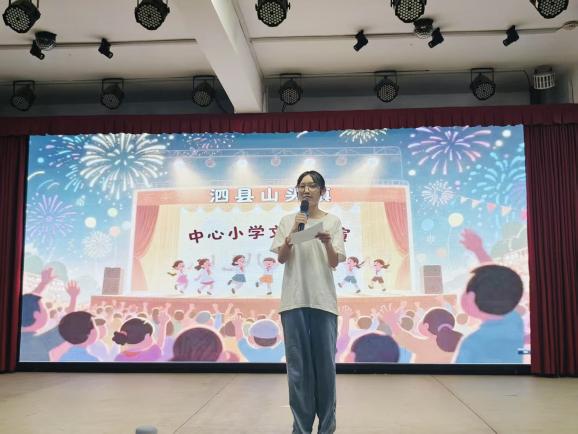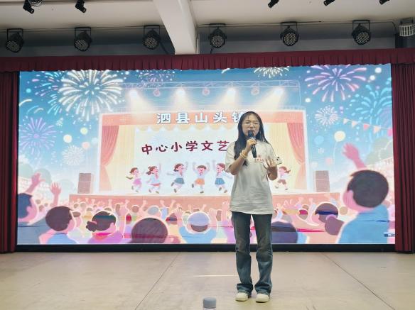 在文艺汇演活动开始的现场,山头镇党委委员、组织委员刘慧上台发表讲话。她说在大学课堂中获取知识,在乡间校园里实践运用,积极鼓励合肥大学红十字的队员们,不忘初心、学以致用,鼓励中心学校的孩子们认真学习、积极向上。为文艺汇演活动注入强有力的精神动力。