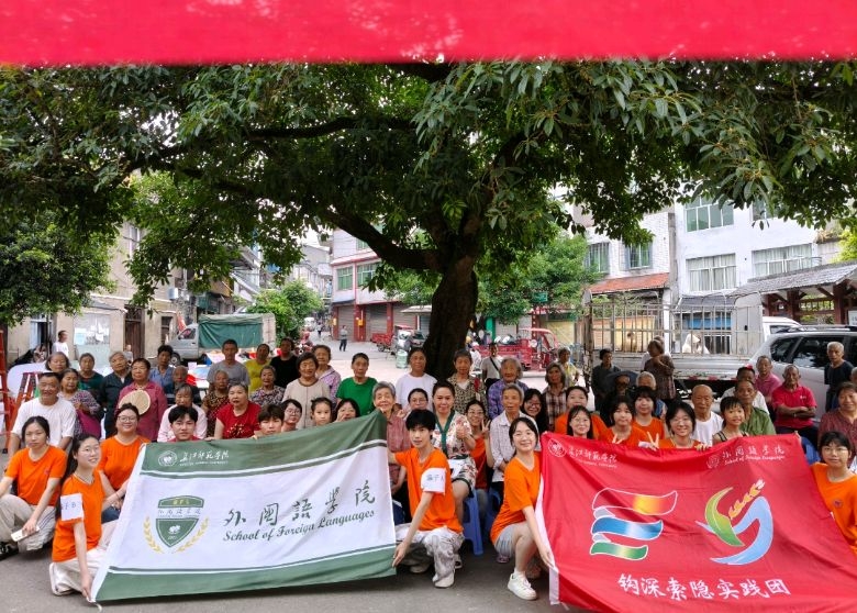 (图为实践团成员与建新居民合照留念 通讯员 邓依琳)