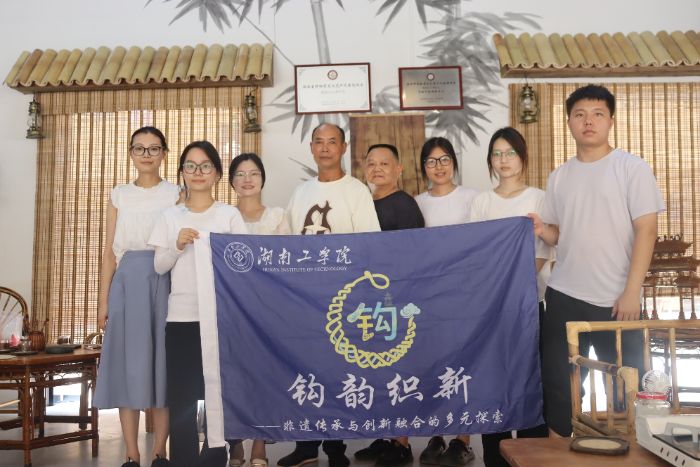 2025年7月5日,“钩韵织新”师生团队在非遗负责人刘勇华主任的热情陪同下,走进桃花江镇大华村,拜访省级非物质文化遗产大郁竹艺传承人周友帮大师,开展了一场“青春遇见传统”的深度对话。通过体验式学习竹编工艺、共谋文创转化路径,青年学子与非遗匠人携手探索传统技艺的现代传承之道。