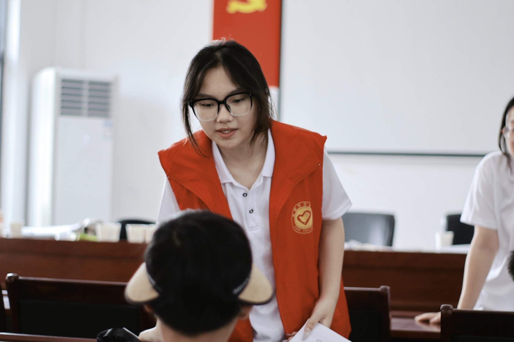 志愿者代表郑兰庆分享服务初心:“去年在团山村的志愿服务经历,让我真切感受到孩子们对暑期特色课堂的热爱。今年,随着新伙伴的加入,课程打磨融入了更多巧思---在保留经典内容的同时,增设手工创作、户外探索等趣味环节,希望用新形式点燃孩子的求知热情。这个夏天,我们想陪孩子们一起‘在玩中学,在学中悟’,让托管班既有知识厚度,更有成长温度。”