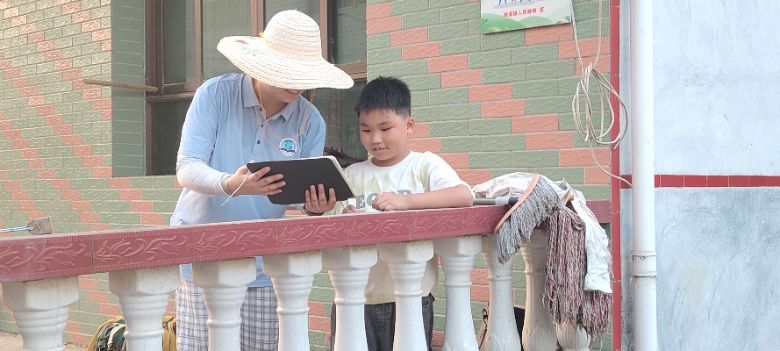 不同于传统的集中宣讲,团队成员们选择挨家挨户走访,主动寻找村里的小朋友。为了让孩子们更直观地理解“两弹一星”的故事,大家特意准备了平板,里面存着精心制作的PPT和相关视频。从老一辈科学家隐姓埋名扎根戈壁,到“两弹一星”成功研制的历史性瞬间,一幕幕画面配合着成员们的细致讲解,让抽象的精神变得可触可感。