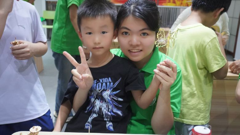 在昆虫科普讲解后,便开展手工实践活动。当分到了属于自己的那一套昆虫模型后,孩子们便在志愿者指导下,迫不及待地开始拼装。孩子们在通过拼接独角仙模型的“Y”形犄角、调整蜻蜓翅膀的对称角度的过程中,直观理解了昆虫的身体的巧妙结构。糖画摊前围绕了一圈小朋友,志愿者以糖为墨,顷刻间便勾勒出振翅欲飞的蜜蜂、薄翼透明的蝉与美丽的蝴蝶,当香甜的糖画递到孩子手中时,科学知识也变得“甜滋滋”的。