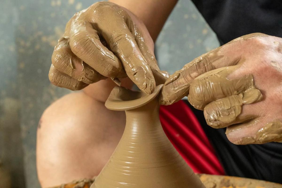 图为卢老师在进行拉坯和修坯工艺的制作。李心妍 摄