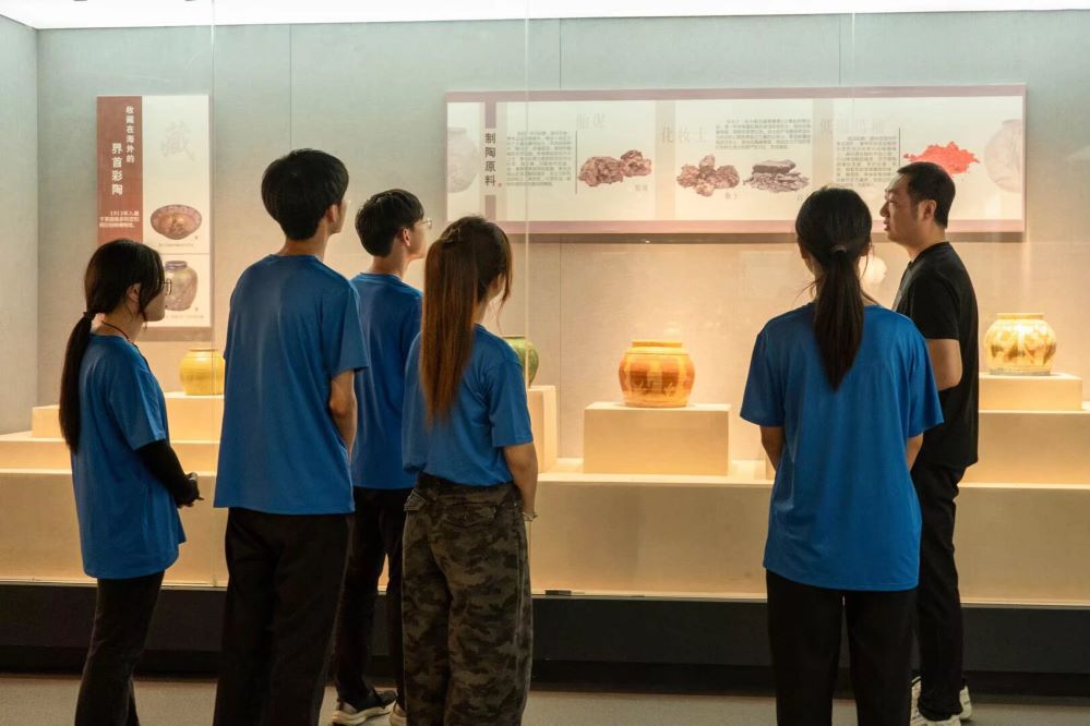 图为桂老师带领团队成员参观彩陶展览馆。 李心妍 摄