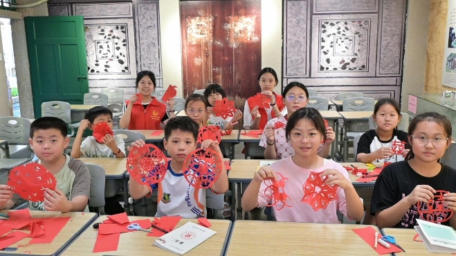 “今天的课好不好玩?”课程结束后,王老师轻声询问。“好玩!今天的课特别有趣,让我学会了许多从前不了解的历史和故事,我以后还要继续体验非遗文化,把剪纸带回去给妈妈看!”小林同学高声回答,小小的脸蛋满是喜悦的笑容。