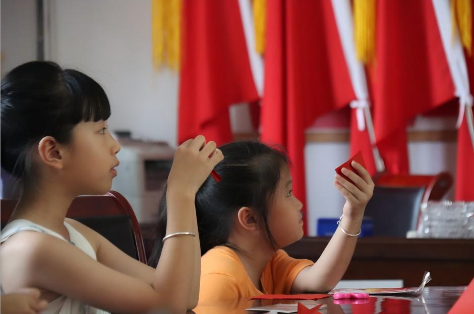 在梅子婧细致耐心的示范与手把手指导下,孩子们从基础的折纸、画样学起,再到小心翼翼地运剪。小小的剪刀在红纸上游走,专注的神情洋溢在每张小脸上。折叠、裁剪、展开……当一张张普通的红纸在孩子们手中魔术般变成对称的窗花时,成功的喜悦点亮了他们的眼睛。