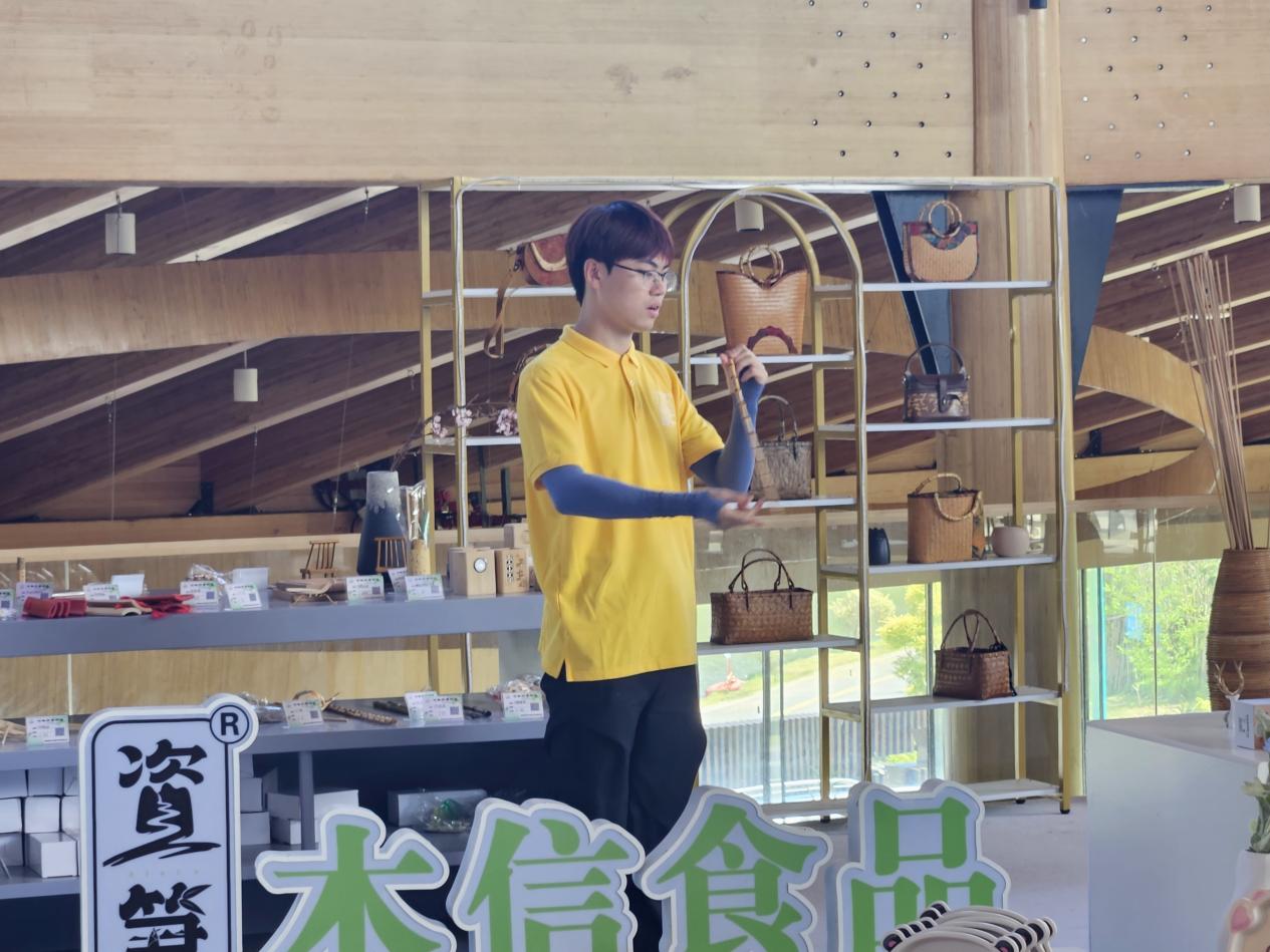 成员们步入科技赋能区,直观感受到竹产业与现代科技碰撞出的创新活力。陈列柜里,竹纤维制作的切菜板、环保餐具整齐排列,竹生物质提取工艺将其转化为可降解塑料原料,竹纤维纺织技术让竹子化身柔软衣物,拓展竹制品在日常用品领域的边界。墙面悬挂的竹编字画更是惊艳,细如发丝的竹丝,编织出山水花鸟的神韵,让竹成为传递东方美学的艺术载体。传统竹产业在科技的赋能下,早已突破固有边界,从简单的生活用品制造,拓展到环保材料等多个领域。从实用物件到创意艺术,竹子多元应用背后,是竹科技的一次次突破。