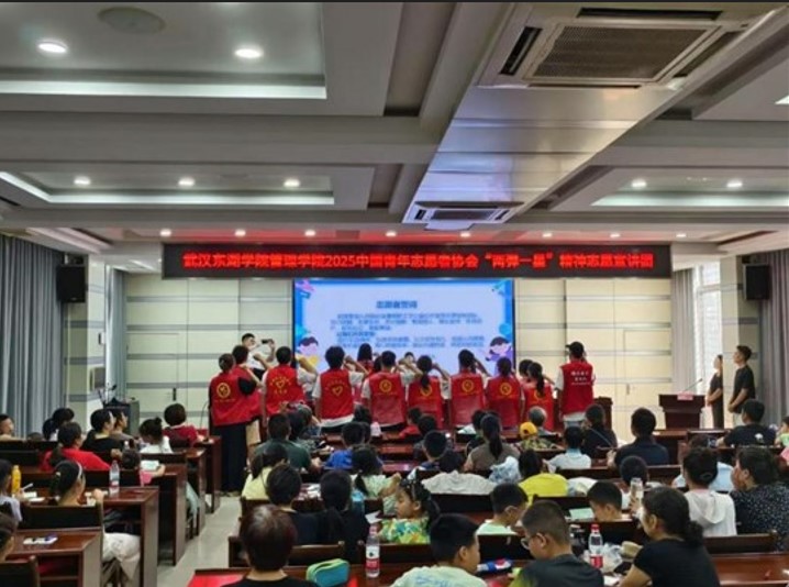 在仪式的高潮部分,武汉东湖学院管理学院2025中国青年志愿者协会“两弹一星”精神志愿宣讲团进行了庄严的宣誓。他们承诺将以实际行动传承和弘扬“两弹一星”精神,为社区服务贡献青春力量。志愿者们用坚定的誓言和饱满的热情,展现了新时代青年的责任与担当。
