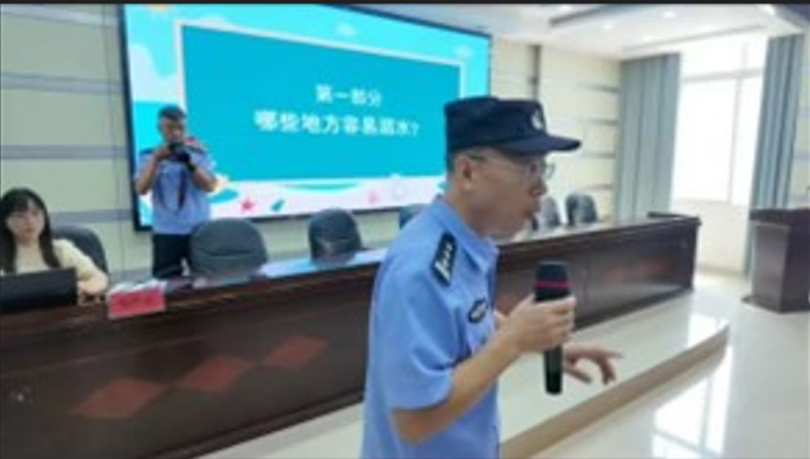 随后,社区民警张警官为孩子们进行了防溺水安全教育,通过生动的案例和互动问答,提高了孩子们的安全意识。实践队成员还为孩子们分发了精心准备的学习用品,鼓励他们快乐学习、自信成长。
