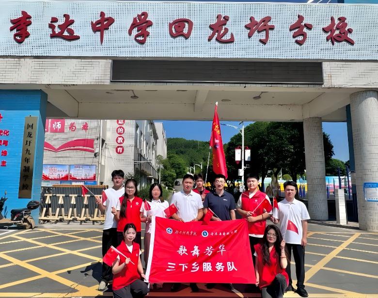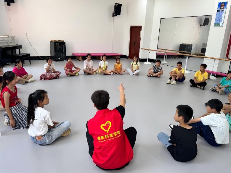2025年7月3日, 湖南科技学院音乐与舞蹈学院“歌舞芳华”三下乡服务队在永州市回龙圩中学的校园里以一场青春洋溢的文艺展示,正式点燃了“七彩假期”文艺夏令营的序幕。