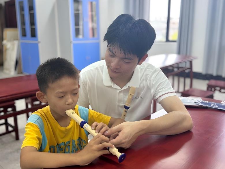 图为志愿者教小朋友竖笛。 史曼齐通讯员摄