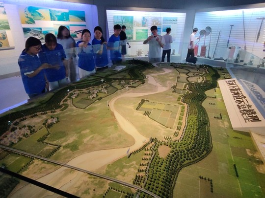 踏入黄河三门峡展览馆,馆内,黄河流域立体模型直观呈现水利脉络,老照片、工程图纸与珍贵影像有序陈列,全方位回溯三门峡水利枢纽从规划到建成的历程。同学们驻足于“工程建设 第一次改建”展板前,凝视三门峡水利枢纽建设场景的黑白照片,在泛黄图纸与详实文字间,解码工程技术突破与历史意义,读懂这座水利工程的“前世今生” 。