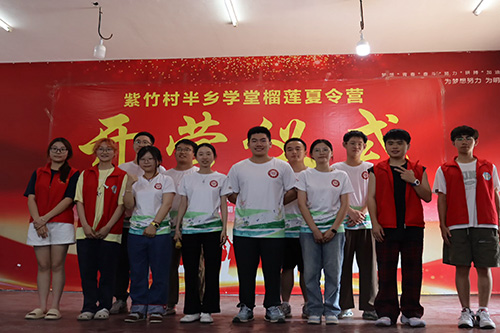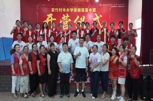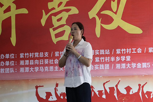 7月5日上午,“半乡学堂榴莲夏令营”在谭家山镇紫竹村党群服务中心正式开营。来自湘潭大学的青年学子、谭家山镇及紫竹村领导、入营学生、家长代表及紫竹村巾帼志愿者齐聚一堂,以爱为名,书写着属于这个夏天的温暖故事。