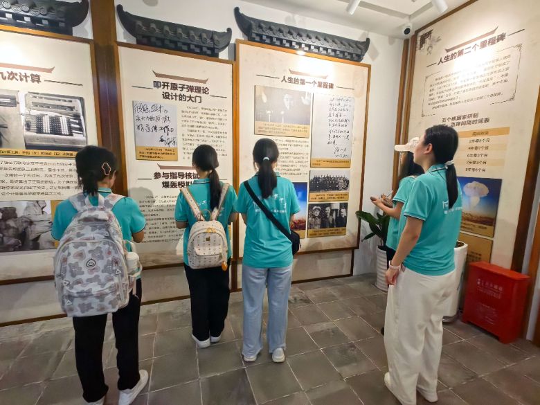 团队首先来到了邓稼先生平陈列馆。馆内陈列的核试验手稿、功勋奖章等珍贵文物,生动地展现了邓稼先“干惊天动地事、做隐姓埋名人”的科研历程。在“戈壁实验室”复原场景前,成员们通过全息投影技术,仿佛置身于当年艰苦的科研环境中,深刻感受到邓稼先的科研奉献精神。同时,从泛黄的家书中,大家体会到了邓稼先“许身国威”的家国情怀,这种精神力量深深打动了每一位实践团队成员。
