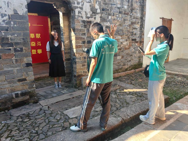 (团队成员拍摄“大学生讲思政课”视频——雷宝琪摄)