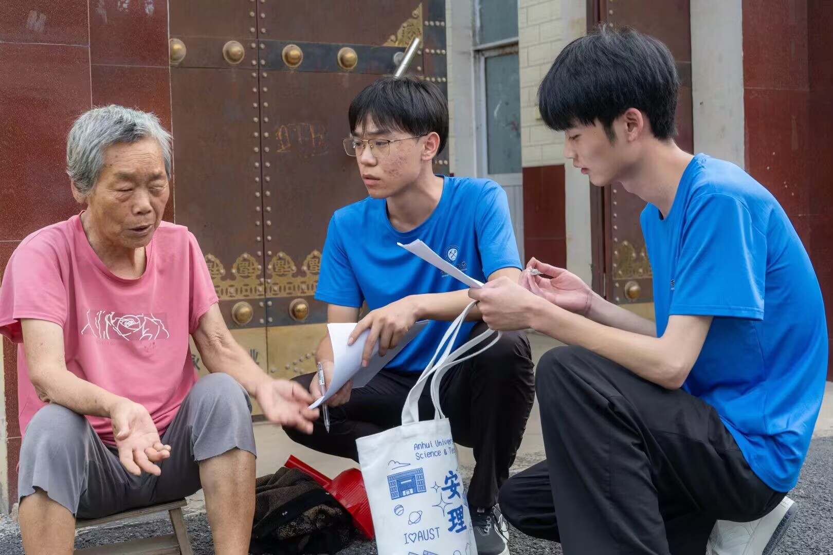 图为团队成员对居民展开调研。李心妍 摄
