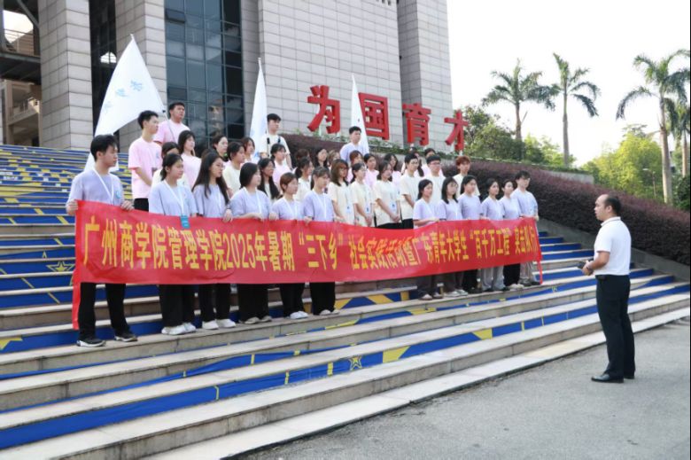 7月7日上午,广州商学院赤梦突击队在第四教学楼隆重举行2025年“百千万工程”突击队行动出征仪式。管理学院党总支书记何锡智对赤梦突击队全体成员提出三点殷切希望: