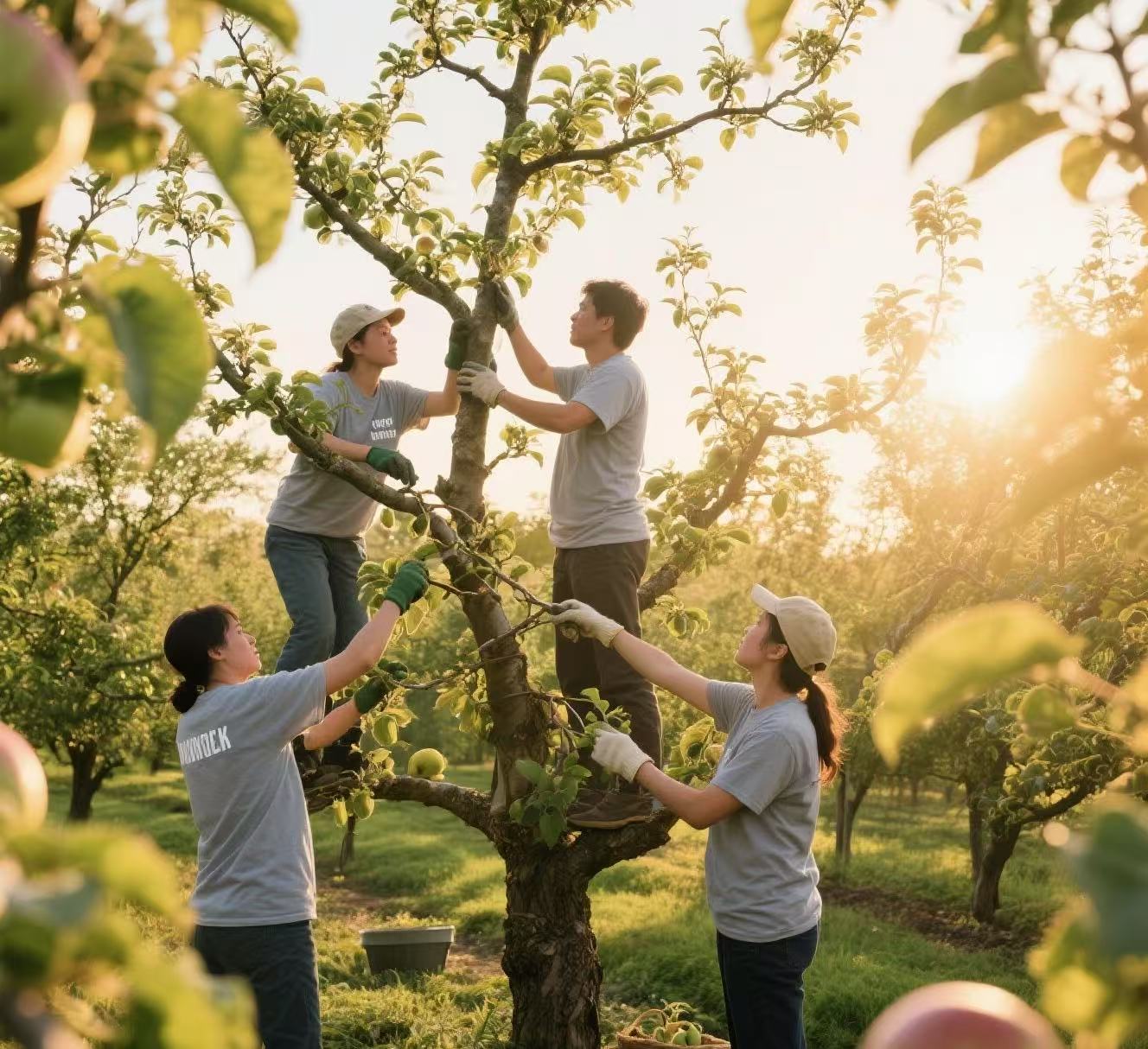 活动最后,队员们与孩子们、村民代表在村委会门前合影。照片里,孩子们举着自己的画作,村民们捧着新鲜摘下的苹果,队员们胸前的校徽在夕阳下格外明亮。
