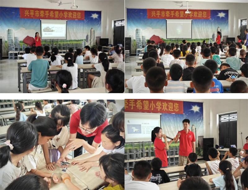 值此中国人民抗日战争暨世界反法西斯战争胜利80周年纪念之际,为切实推进科技强国战略,充分展现兵工院校的专业特色与优势。2025年7月9日,西安工业大学“光电砺刃耀童心,兵工启智绘未来”暑期社会实践队赴陕西省兴平市牵手希望小学开展国防兵工科普教育活动。