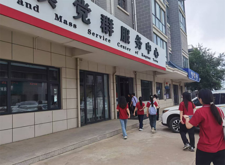 “深入党群服务中心,领略基层治理风采” 文润宜君赋能团成员们来到哭泉镇党群服务中心,看到了整洁有序的办公环境和热情服务的工作人员,党群服务中心为村民提供政务服务,在党群服务中心,三下乡成员了解到当地基层党组织在乡村振兴中的引领作用,基层党员干部积极发挥先锋模范作用,带领村民发展产业、采取直播带货模式,将当地特产向外推销,带动经济发展。