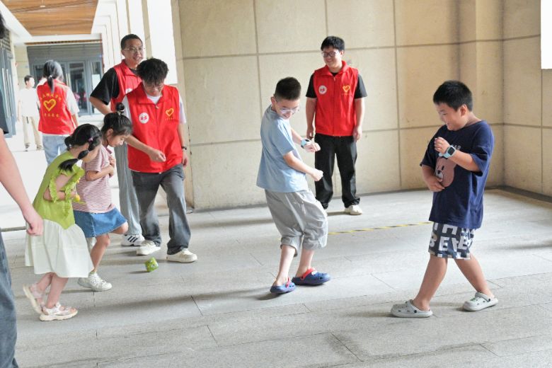 童趣运动会,欢乐伴成长 下午,社区迎来了暑期第一场趣味运动会。志愿者与小朋友们一起玩乐跳花绳、下象棋、打羽毛球、踢毽子……其中,扔沙包游戏最受欢迎,志愿者们首先示范游戏规则:将参与者分为两队,一队站在中间区域作为“目标”,另一队分列两端负责投掷。随着游戏开始,沙包在空中来回飞舞,孩子们灵活闪躲,当有人被沙包击中,现场就爆发出阵阵欢笑和掌声。志愿者们参与游戏,并指导孩子们掌握投掷技巧和躲避要,游戏过程中,孩子们逐渐领悟到团队配合的重要性,主动为队友加油打气,现场洋溢着孩子们的欢声笑语。每个项目都让孩子们在运动中收获快乐。这场融合了传统体育与益智游戏的运动会,不仅锻炼了孩子们的身体素质,也培养了他们的团队协作能力,更为孩子们的暑期生活增添了“橙”活力。