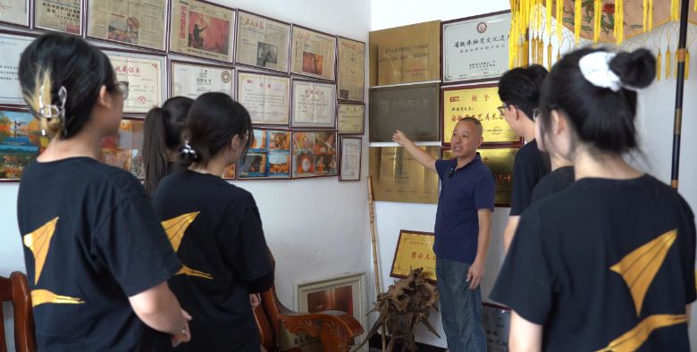 “同学们,请看这些牌匾。”厂长郑国民指着墙上的牌匾。墙上的荣誉牌匾记录着岁月的馈赠:“安徽省非物质文化遗产”“中国油布伞第一品牌”“安徽省老字号润泽”……郑国民摩挲着“中华人民共和国轻工业《油布伞》行业标准主要起草人”等荣誉证书,语气里带着自豪:“2017年我们的油布伞制作技艺入选省级非物质文化遗产,并且荣登2025年央视非遗晚会,同时今年5月4日,我受世界技能博物馆的邀请,前往上海展演油布伞。”