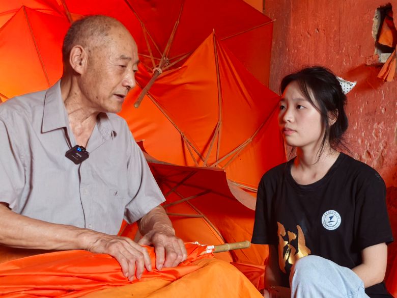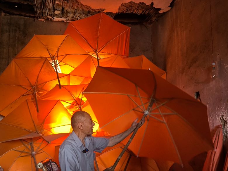 (注:老师傅撑伞展示)