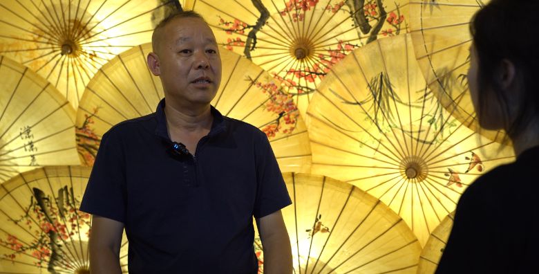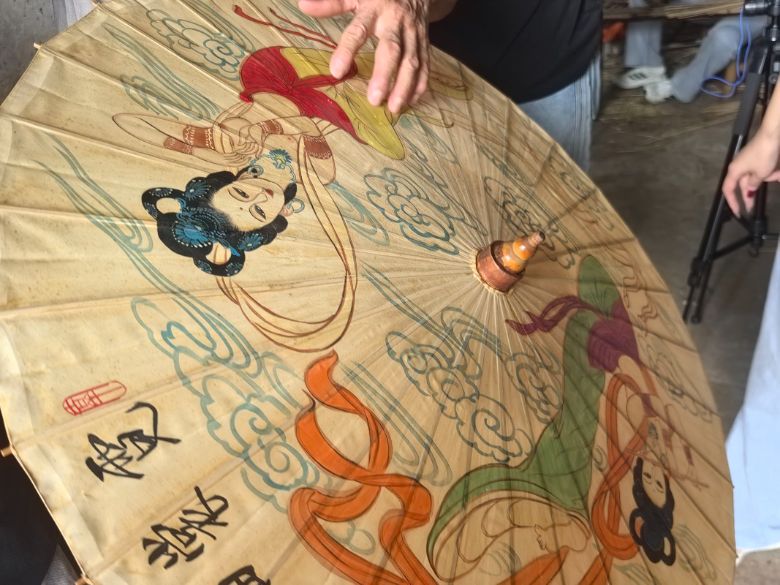 他拿起一把伞面绘有敦煌飞天的油布伞,伞骨轻转间,桐油浸润的棉布发出细微的声响:“古人说‘伞开天地阔’,油布伞用皖南深山的水竹做骨,绩溪棉布做面,涂上本地的熟桐油,能做到‘晴雨两用,三年不腐’。这不仅是物件,更是泾县人的生活哲学——既能遮风挡雨,也能抬头见日。”