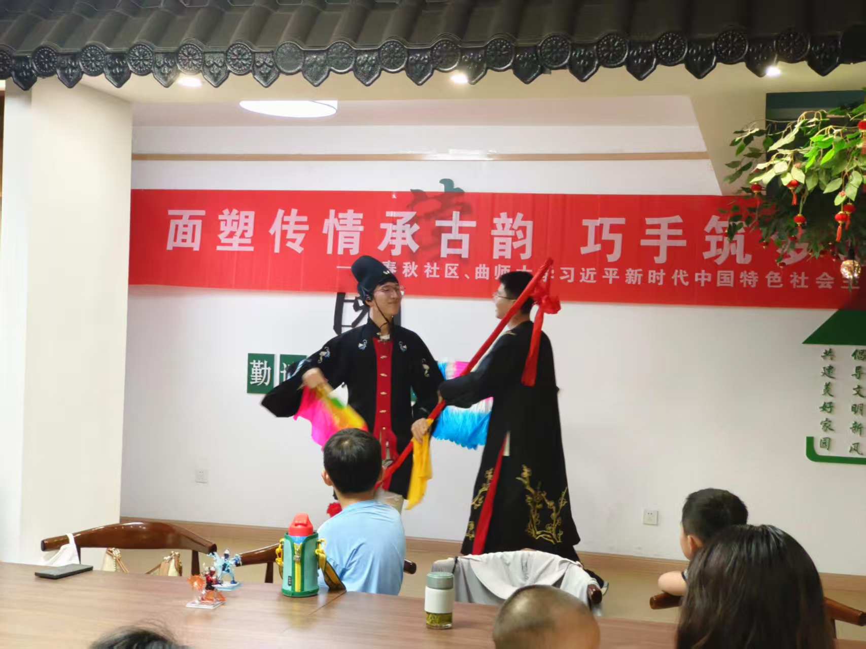 2025年7月4日下午,曲阜师范大学新时代文明传习志愿者服务实践队队员把御景湾小区红帆驿站变成了传统文化小课堂。