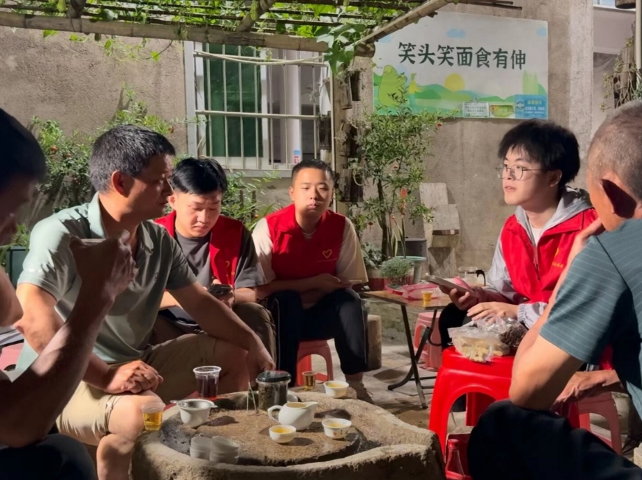 图为实践队员与当地茶农沟通交流。王瑞潇摄