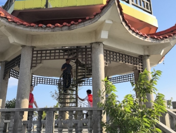 图为高主任带领实践队登上金山阁。林宸辉摄