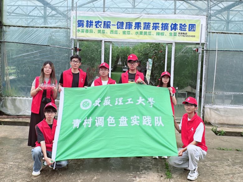 成员在水培番茄大棚外合影 (摄影:王卓) 未来,安徽理工大学与米坊村将继续深化合作,在农产品仓储建设、品牌打造等方面开展更多务实合作。相信在高校智力支持和乡村产业发展的双向赋能下,米坊村的黄瓜、宽皮柑橘、水培小番茄必将走向更广阔的市场,绘就乡村振兴的壮美画卷。