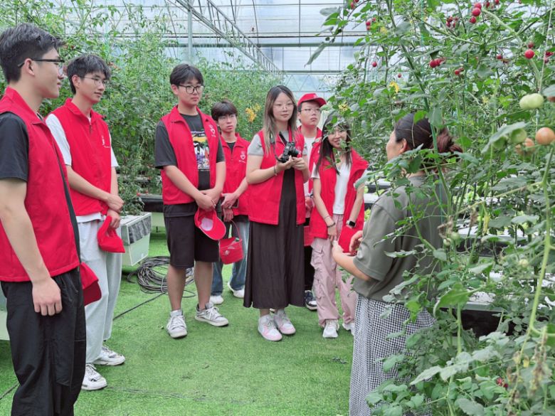 负责人介绍无土栽培技术 (摄影:王卓) 参观过程中,成员们仔细观察不同品种小番茄叶片锯齿、花序形态等细微差异,认真记录种植要点,并就种植成本、市场销售等问题与工作人员展开深入交流。恰逢采摘期,团队成员还亲身体验了小番茄的采摘工作,将一颗颗成熟的果实小心翼翼摘下,感受着丰收的喜悦,也体会到现代农业科技给农业生产带来的巨大变革。
