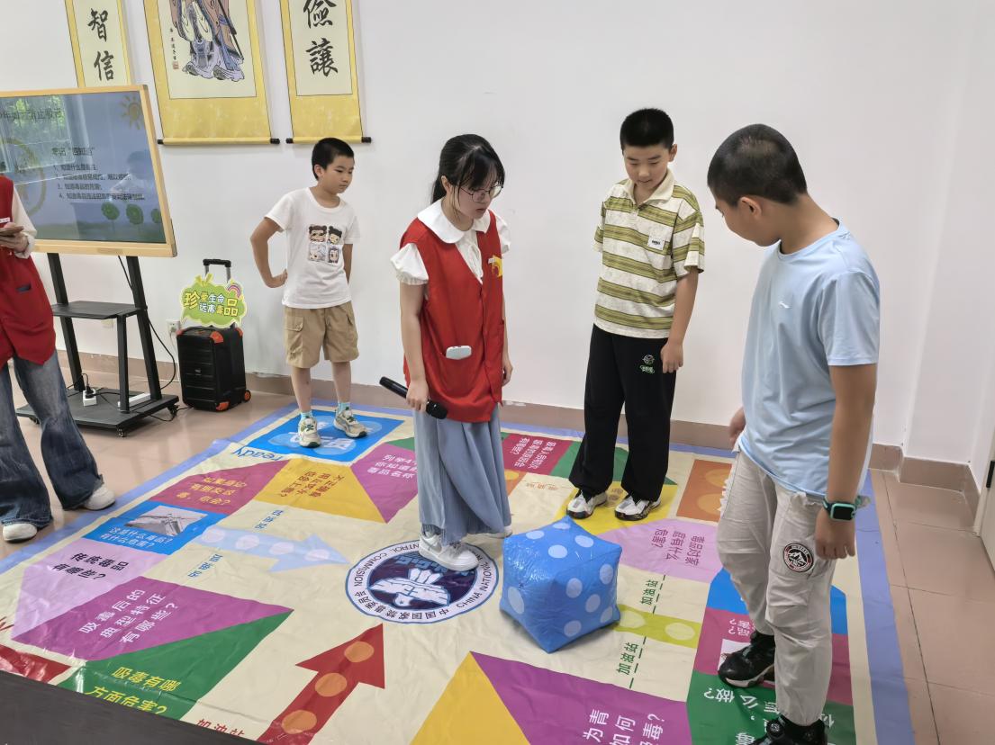 趣味游戏,传递禁毒理念 在轻松愉快的氛围中,禁毒飞行棋游戏成为最受欢迎的环节。实践队队员巧妙地将禁毒知识融入游戏中。小组轮流掷骰子决定行进步数,每个棋盘格子对应不同的知识点,答对者可获得额外前进机会,答错则需停留一轮。游戏过程中,孩子们全神贯注,为了团队胜利积极思考,在合作答题的过程中,不知不觉地巩固了所学的禁毒知识。这种寓教于乐的方式,不仅激发了孩子们的学习主动性,还提升了识毒、防毒、拒毒的意识和能力,为他们的健康成长筑牢了思想防线。