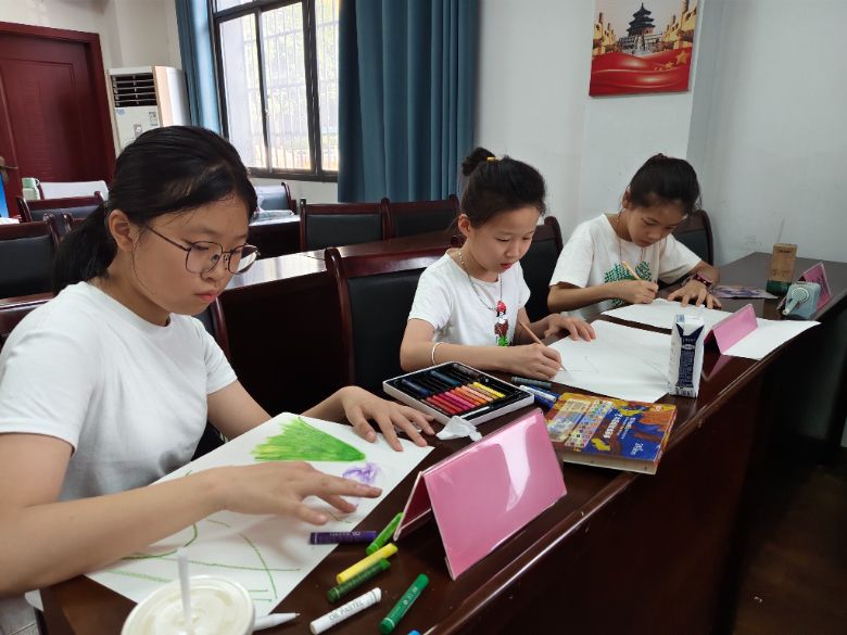 在语言文化教育方面,实践团以多元形式推动文化浸润。趣味古诗词课堂别出心裁,实践团选取李白的《望庐山瀑布》,将这首描绘江西壮丽景色的经典诗作与绘画相结合。孩子们认真思索,根据自己的理解,一笔一划画出心中庐山瀑布的模样,仿佛身临其境,充分领略到了诗中描绘的磅礴气势与壮美景色。