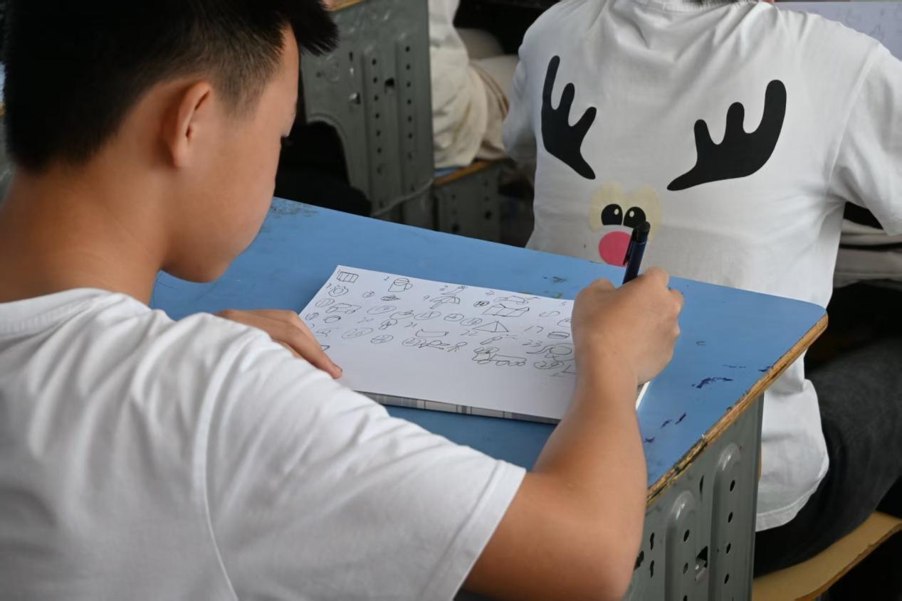 紧接着进行的“我画我猜”游戏更是将活动气氛推向高潮。唐单倩老师在两分钟内接连报出30种物品的名字,同学们则发挥想象力,在A4纸上将这些物品画出并标好序号。随后,唐单倩和邹烨老师随机报出物品序号,大家纷纷睁大眼睛,竖起耳朵,比拼谁能最先准确说出物品名字。有的同学画得形象生动,一眼就能被认出;有的同学则用抽象的笔触展现物品特征,考验着大家的联想能力。每当有人抢答成功,教室里便会爆发出热烈的掌声,欢声笑语此起彼伏。