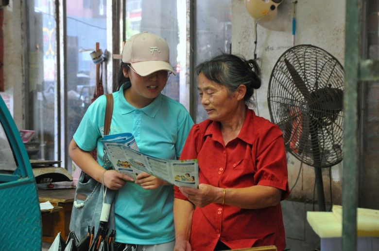 随后,在街角的树荫下,实践队员们遇到了在整理废旧纸盒的老人,便凑上前去,用亲切的方言先拉近距离,再慢慢切换到普通话,用通俗易懂的例子告诉他们,学说普通话能方便和外地亲友视频、看懂新闻里的播报,让这份语言的温暖,顺着街头巷尾的烟火气悄然传递。