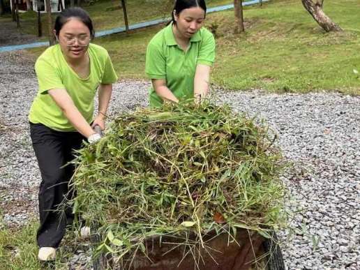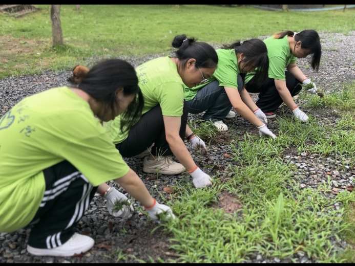 在雨中,实践团的成员们展现出了极高的团队协作精神。他们互相鼓励,互相帮助,共同克服雨天的不便。杂草被一株株拔除,石子路逐渐恢复了原有的整洁与美观。推车中的杂草也越来越多,成员们推着小车,穿梭在旅游区的各个角落,将杂草运输至指定的处理地点。
