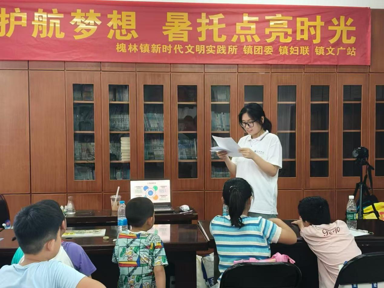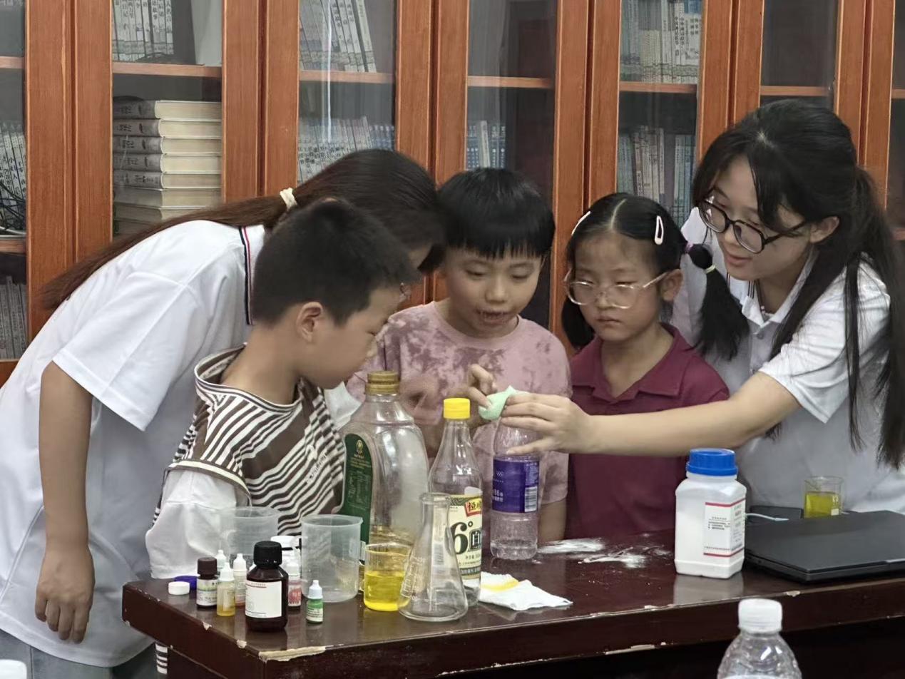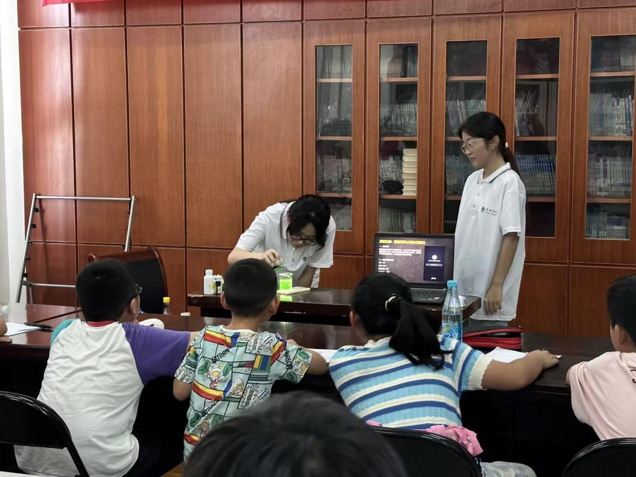 为丰富乡村少年儿童暑期生活,提供学业辅导与心灵陪伴,2025年7月5日,巢湖学院“化韵传槐星火实践团”来到安徽省合肥市巢湖市槐林镇,开展了为期7天的环巢湖“一院一镇一品”社会服务行专项活动。在活动过程中,实践团队为孩子们精心准备了心理健康讲座、化学知识讲座以及趣味化学科普实验等特色内容。实践团队队员通过生动的讲解和直观的演示,向孩子们传递相关知识,并且在讲座与实验过程中与孩子们进行积极互动。通过耐心的引导与热情的鼓励,孩子们认真聆听、踊跃参与实验操作,对科学现象展现出浓厚兴趣,活动场所里充满了孩子们的惊叹声、讨论声与成功的欢笑声。