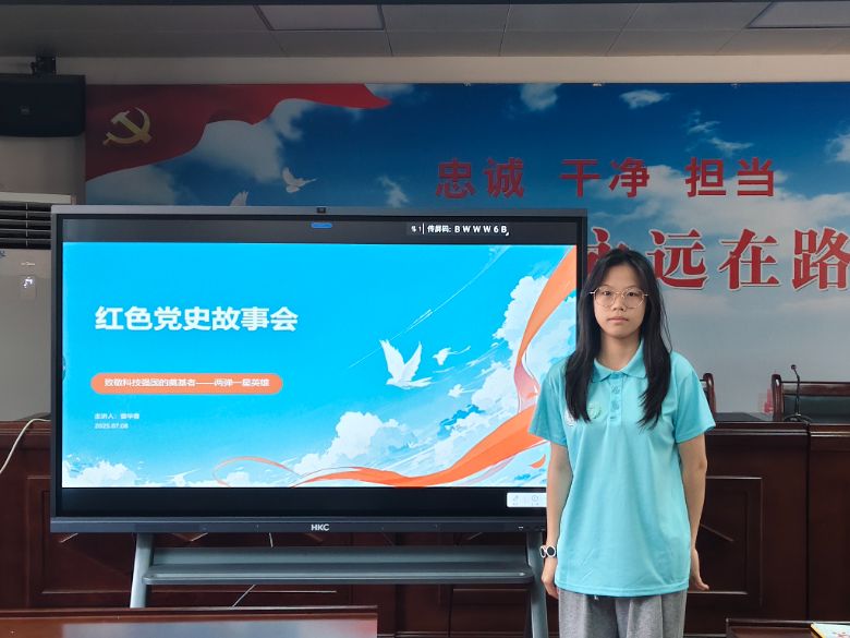 实践团队成员开展“红色党史故事会”,以“两弹一星”英雄事迹为内容,在屏幕前为小朋友讲述科技报国故事,传承红色精神。