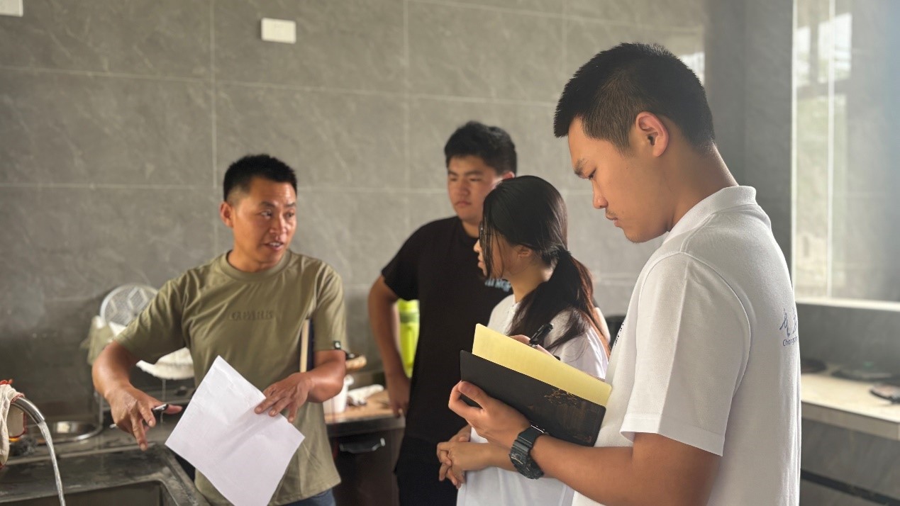 “民族要复兴,乡村必振兴”。为引导和帮助广大青年学生厚植爱农情怀,练就兴农本领,在乡村振兴的大舞台上建功立业,2025年7月8日,“一‘科’青‘葱’,‘合’力助‘农’”乡村振兴促进团赴重庆市万州区恒合土家族乡箱子村开展2025年暑期“三下乡”社会实践活动。9点整,实践团全体成员跟随着村支书进行走访,首先来到的是陈叔家,陈叔家的自来水问题一直都很严重,随后村支书为实践团成员分析背后的原因,实践团成员们全程专注聆听并认真做笔记,这些详实的内容让成员们深刻意识到,乡村振兴并非一句简单的口号,而是需要直面诸多实际问题的系统性工程,也更坚定了大家为村子办实事、解难题的决心。