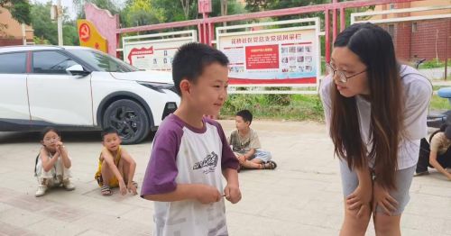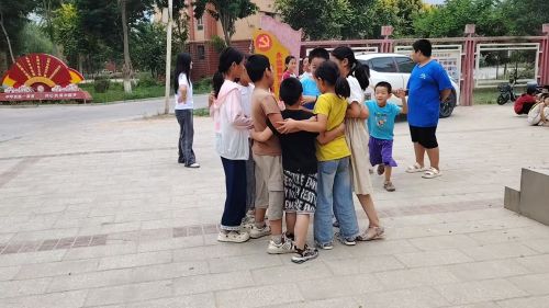 完成辅导后,实践团成员带领孩子来到了户外,开展了丢手绢、抱团等经典游戏。随着欢快的歌声响起,丢手绢游戏正式开始。孩子们围坐成一圈,眼睛紧紧盯着身后慢慢走动的小伙伴,气氛紧张又兴奋。当手绢被悄悄放下,一场激烈的追逐赛瞬间展开,欢笑声、加油声此起彼伏,回荡在整个活动场地。抱团游戏中,孩子们根据指令迅速组合,在一次次奔跑和拥抱中,不仅锻炼了反应能力,更增进了彼此之间的友谊。
