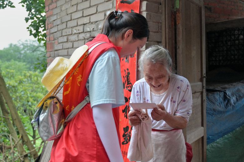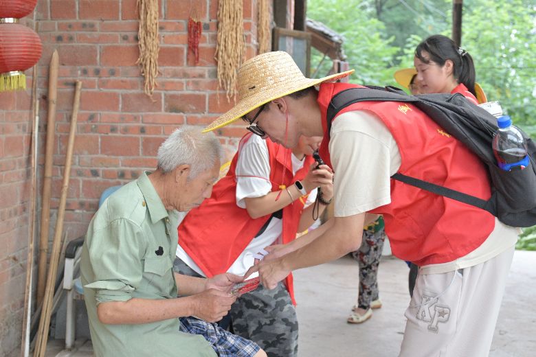 情暖“朝夕”间,关爱零距离——用真心托起“一老一小” “村里的老人一辈子也没拍过几张照片,我想给他们拍张照,给他们带来一些热闹和温暖。”团队成员刁学晨发起倡议。一大早,在村书记的支持下,小分队扛起设备深入三河村,“奶奶,我们是大学生志愿者,我们来给您免费拍照的”,一句“大学生”就能让老一辈的人,放下所有的戒备。从不好意思面对镜头到一起幸福合影,再到邀请进家里头坐坐,村里的老人们逐渐享受起这份热闹。据了解,三河村共计1279户人家,户籍人口3102人,这些留村老人,大多是因为子女进城务工,跟不上现代化发展而留下的守村人,他们比邻而居,相互照顾。村委会工作人员时常关照、走访,对他们拥有全面动态的了解。下午,志愿服务团了解到该村存在一个因病致贫困难户、一个困难党员家庭,决定实地走访,团队志愿者为其带来油、米、洗洁精等基本生活物资,与老人们拉家常,嘘寒问暖,给同样留守的孙子孙女讲解防水、防火等安全注意事项。此次走访送去的不仅是物质关心,也是精神关怀,更是对中华传统美德的弘扬。