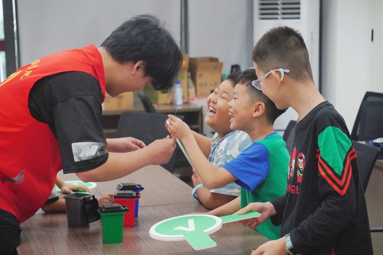 中国式现代化是人与自然和谐共生的现代化。志愿服务团把关爱进行到底,积极组织环保宣传,共建绿色家园,推动共享发展成果。在社区粘贴标语、开展环保课堂,让绿色生态、健康环保的生活理念深入人心。课堂上,志愿者通过视频、图片向社区儿童展示垃圾危害,利用不同颜色、不同类别的垃圾桶模型,进行垃圾分类游戏,引导社区儿童将垃圾分类意识融入日常生活实践。同时,团队另一分队,响应乡风文明建设号召,走入农户,奔赴乡村振兴一线,有条不紊地锄地除草、清扫院落、垃圾分类宣讲等,为建设美丽中国、实现人与自然和谐共生的现代化注入基层力量。